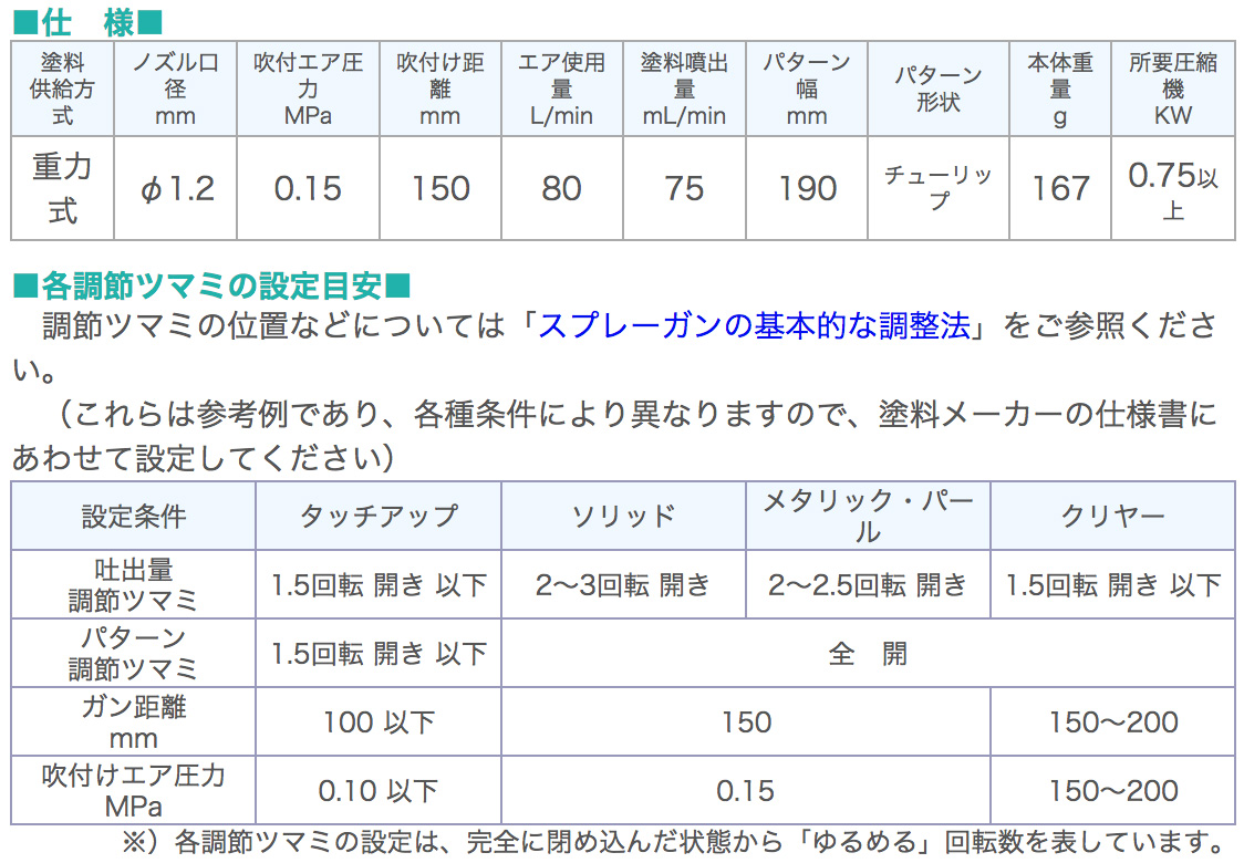 Iwata 136BG kiwami-mini ----> Meiji Finer Spot G12 pattern :190mm